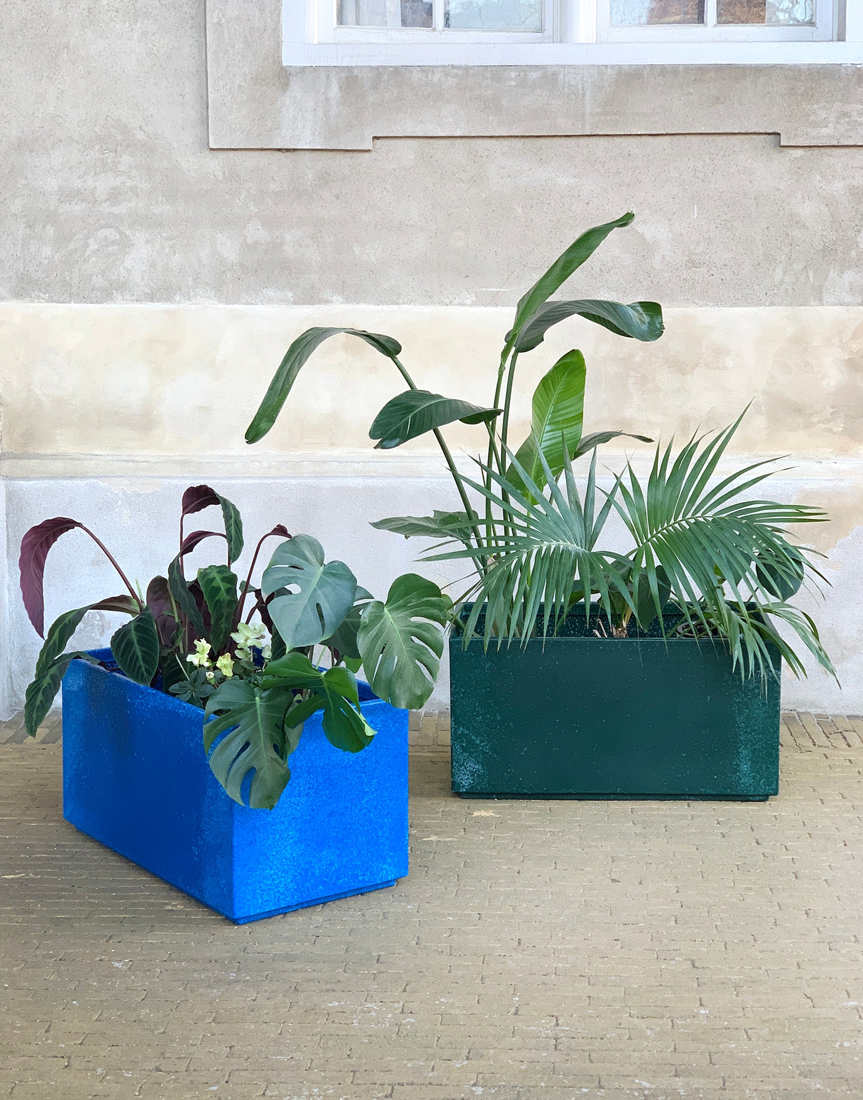 The planters can be ordered with inserts with self-watering system. And it is made from 100% recycled plastic of course.