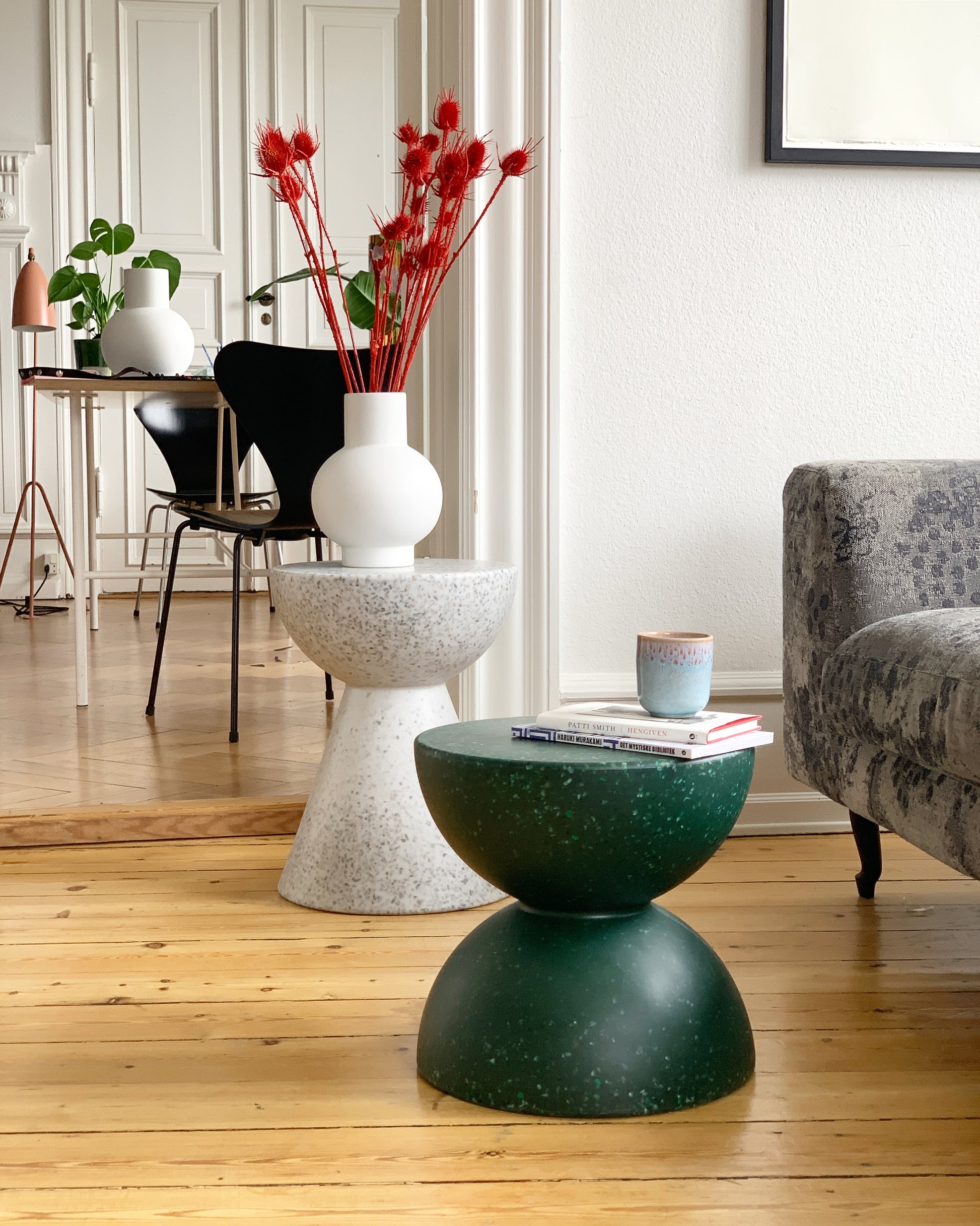 Hunter´s Moon Child is sustainable Danish design made of Household waste and containers from the city of Frederiksberg. It has a cool and calm green color that goes well with natural materials and plants. It can be used as a stool or a small table, both indoor and outside. Seat height is regular height for adults. The surface is easy to clean and tolerates most detergents. Note that the colours vary a little bit from product to product. If you wish to purchase a larger amount you are welcome to contact us at info@wildstudiocph.com