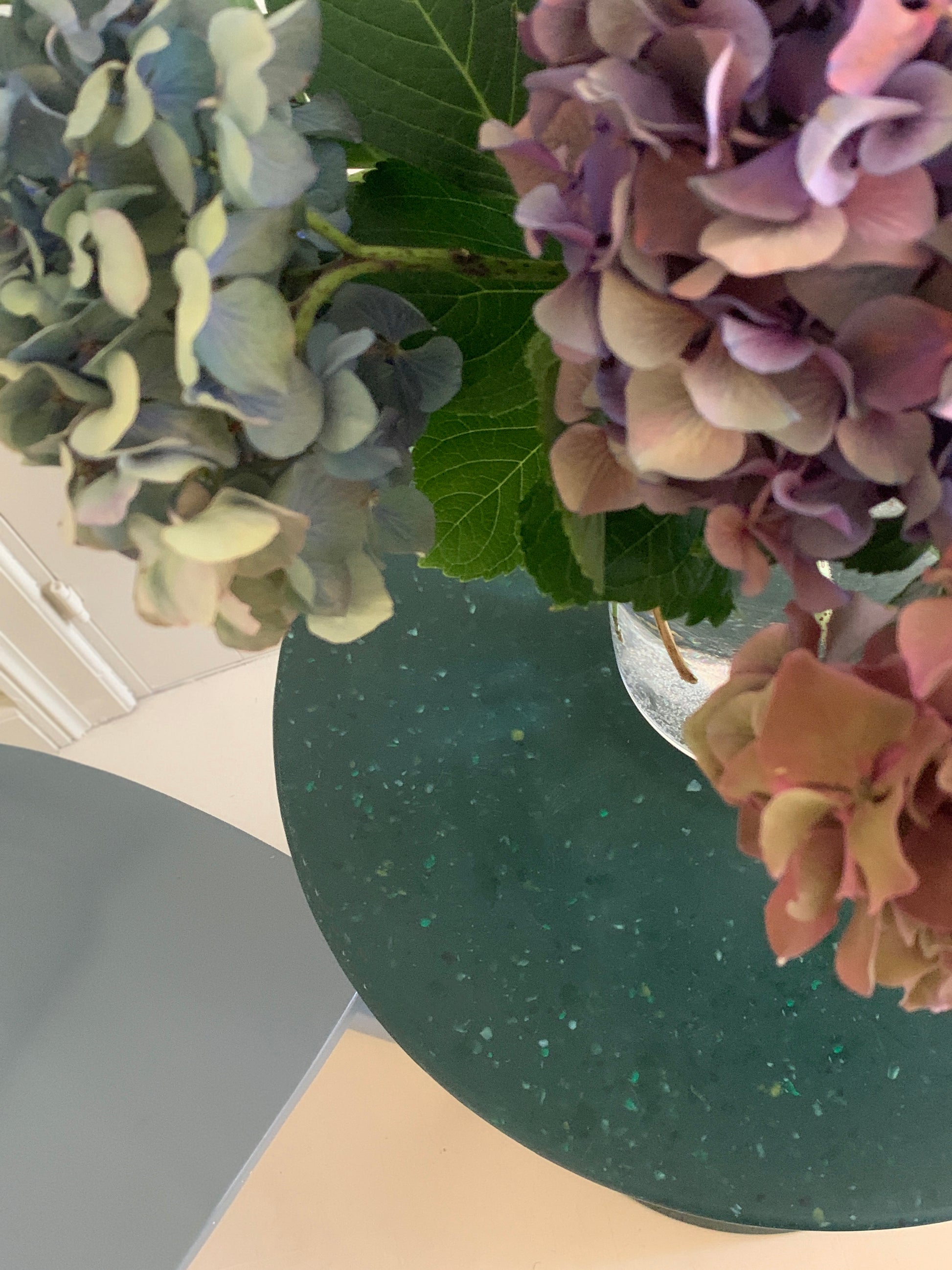 This table is a sculptural sustainable statement in a soothing foresty green. Easy to clean and pleasant to touch. The Moon products can be used indoor as well as outside. This version is made from industrial plastic waste from production to the city of Frederiksberg in an all Danish production chain.