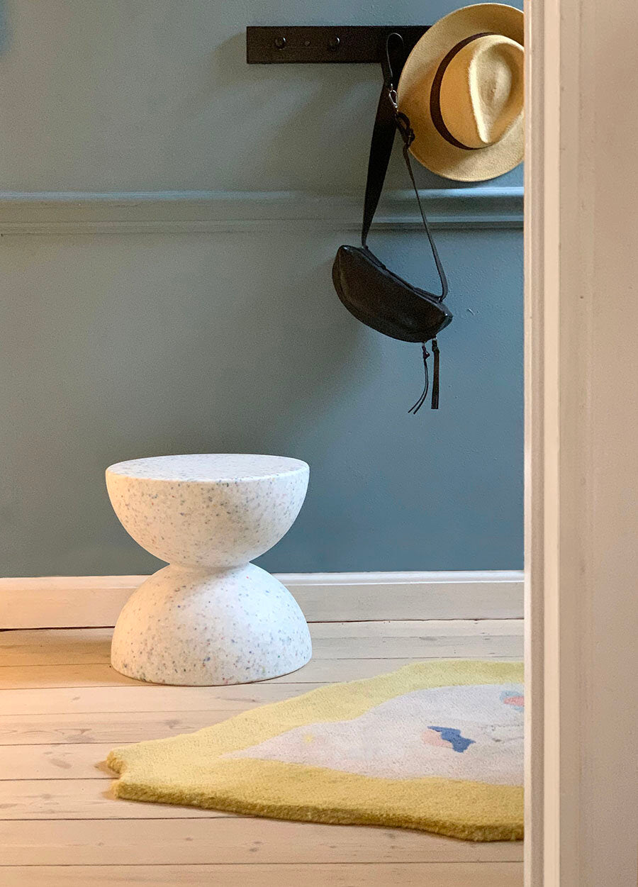 Paper Moon Child is made of 100% recycled plastic, mailly from household sorting. It is a stool for children or a small table, both indoor and outside. Two on top of each other create a full moon and two half mons. The surface is easy to clean and tolerates most detergents. It is robust and weather resistant. Note that the colours vary a little from product to product. If you wish to purchase a larger amount you are welcome to contact us at info@wildstudiocph.com