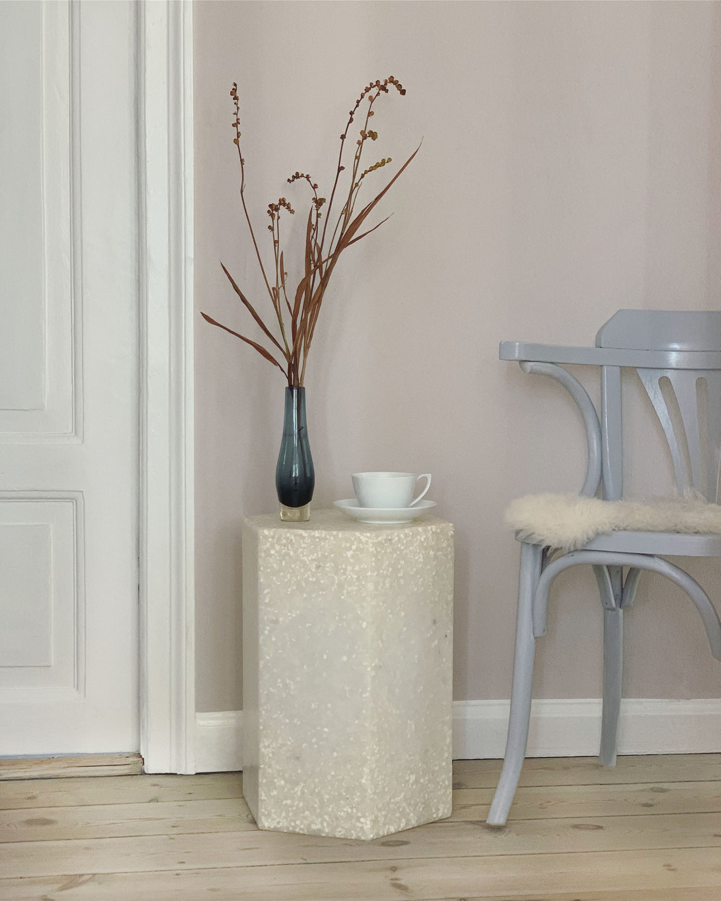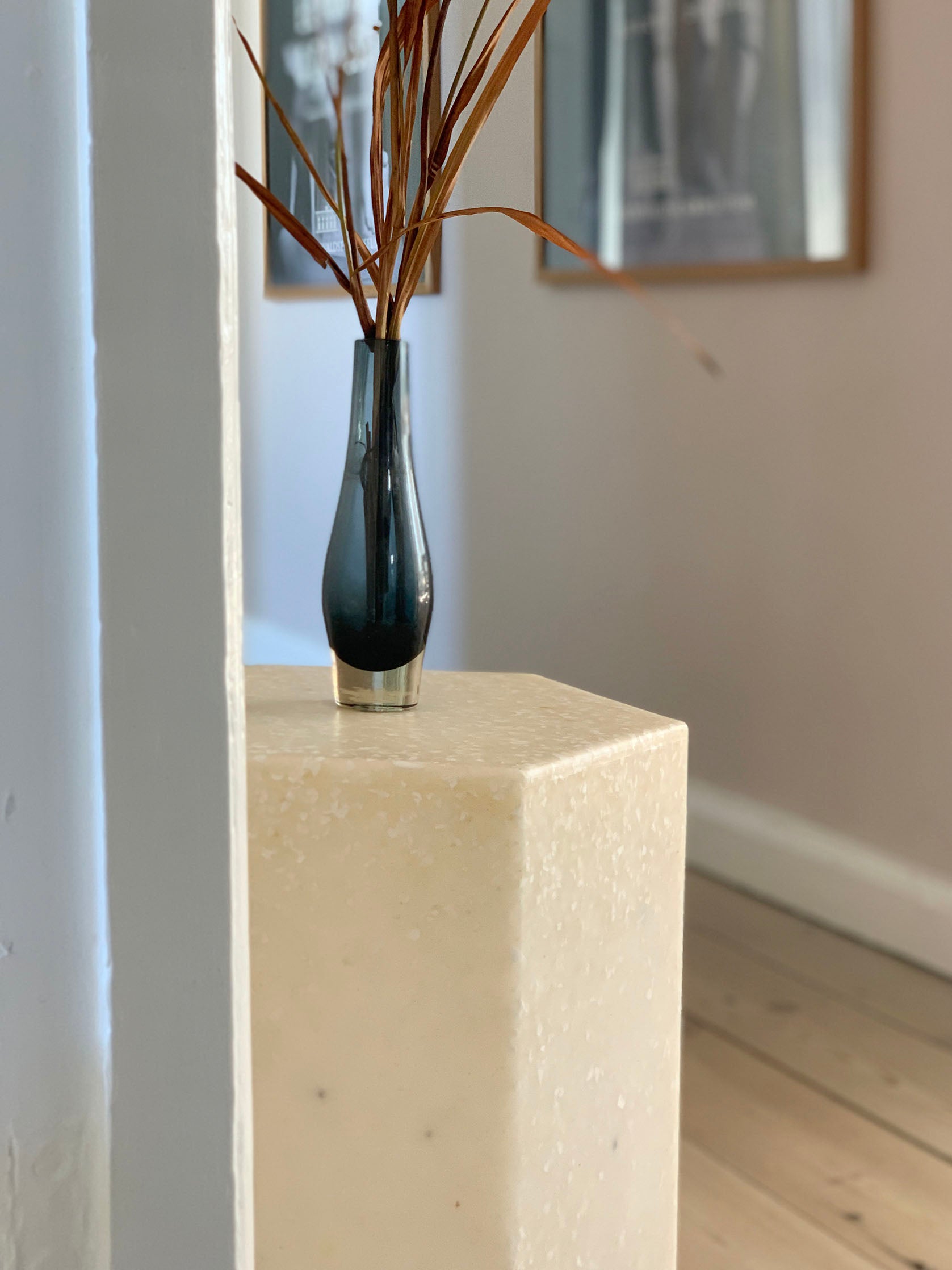 Winter Star is a multifunctional sustainable design made of 100% recycled plastic, mainly from used waterbottles. The color is translucent ivory and cream. It can be used as a stool, a podium or a small table, both indoor and outside.