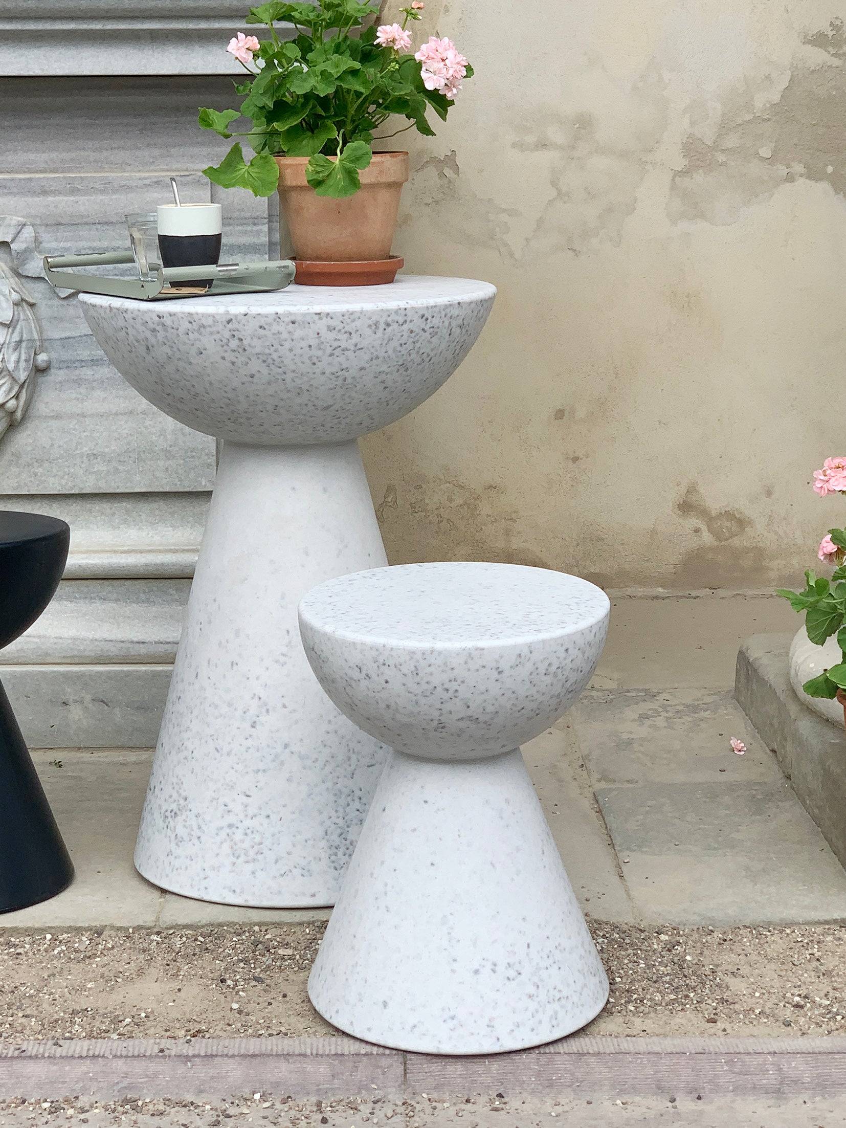 This table is a sculptural sustainable statement in a soothing dotted caramel and cream color. It'sasy to clean and pleasant to touch due to the cast having been sand-blasted. The Moon products can be used indoor as well as outside. This version is made from industrial plastic waste from agriculture in an all Danish production chain.
